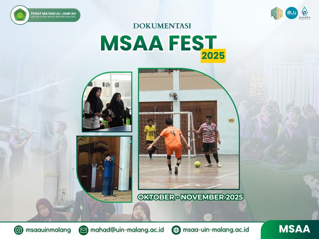 Malang – Pusat Ma’had al-Jami’ah UIN Maulana Malik Ibrahim Malang sukses menyelenggarakan MSAA Fest 2025, ajang perlombaan antar mabna/asrama yang berlangsung sejak 25 Oktober hingga 13 November 2025. Kegiatan ini diikuti oleh 779 peserta yang tersebar dalam 11 cabang perlombaan, mencakup klaster keagamaan, kesenian, dan olahraga. Selama hampir tiga pekan