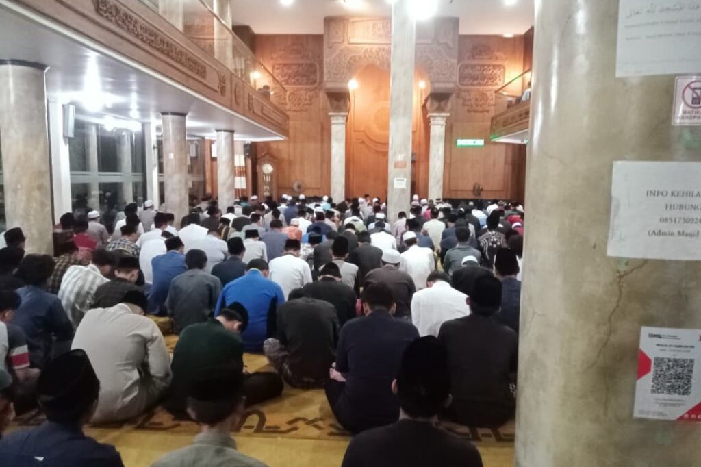 Malang – Pusat Ma’had al-Jami’ah UIN Maulana Malik Ibrahim Malang menggelar istighosah serentak di empat lokasi pada Minggu malam, 31 Agustus 2025, usai salat Maghrib berjamaah. Kegiatan tersebut berlangsung di Masjid At-Tarbiyah untuk mahasantri Kampus 1 putra, Masjid Ulul Albab untuk mahasantri Kampus 1 putri, Masjid Ali Ash-Shobuni untuk mahasantri