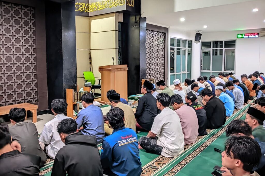 Di Masjid At-Tarbiyah, istighotsah dipimpin langsung oleh Mudir Ma’had, Kyai Dr. Ahmad Izzuddin, M.HI. Pelaksanaan dimulai dengan pembukaan singkat, dilanjutkan pembacaan istighotsah dan tahlil, dan diakhiri dengan rangkaian doa keselamatan bagi para korban bencana serta masyarakat Sumatera secara umum. Jamaah tampak memenuhi area masjid dan mengikuti rangkaian bacaan dengan penuh kekhusyukan. Kehadiran pimpinan Ma’had di barisan terdepan menegaskan komitmen lembaga dalam mengawal penguatan spiritualitas di lingkungan kampus.